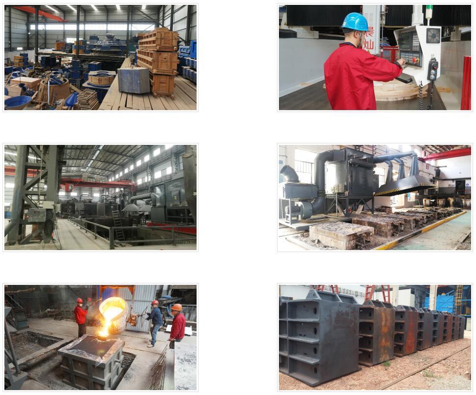 黑山路桥机械科技有限公司铸造车间主要以大型碳钢,矿山耐磨件为主要产品范围,公司在生产压力机配件.化肥设备配件,矿山破碎机配件已有多年经验,黑山品牌声名远播铸造车间厂房现已扩展达到20000平米,拥有5-10吨大型中频电炉6只,20吨大型中频电炉2只,拥有浇铸单件产品60吨的生产能力。