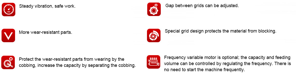 When working, the motor drive, so that the belt groove coupling drives the eccentric shaft to rotate, thereby generating a huge exciting force, so that the body is forcedly vibrated on the supporting spring, and the material vibrates the main power to make the 15° trough. Sliding and throwing movements move the material forward to achieve the feeding purpose.